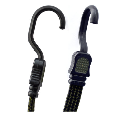 The long lasting, premium grade, tough Sportsman 6 Piece Flat Bungee Set can strap down cargo, camping equipment, building material, tarps, and canopies. The wide, flat design holds tighter than traditional bungees and wont cut into cargo. Coated steel hooks wont bend or scratch. Premium grade, long lasting rubber can stretch 1.5 times its original length. The Sportsman 6 Piece Flat Bungee Set includes 2 each in 18, 32, and 45 inch lengths Premium grade, long lasting rubber Set includes 2 each in 18, 32, and 45 inch lengths Stretches 1.5 times original length Flat cord design spreads load and will not cut into cargo Coated steel hooks are stronger than conventional hooks
