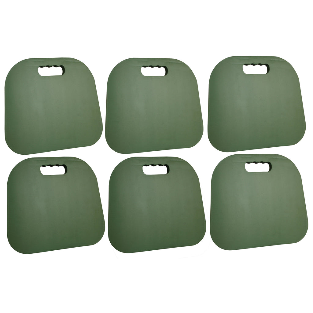 The Buffalo Outdoor Seat Cushion Set will keep you and your buddies comfortable during the hunt and your entire family comfortable during the game, listening to the outdoor concert, or watching the fireworks. With 6 individual cushions you have a padded seat for grandparents, aunts and uncles who come to watch the game. Each cushion measures 13 in. L by 14 in. W and features 1 inch of foam rubber, for a comfortable and padded seat. All the cushions are uniform in size and color. The Buffalo Outdoor Seat Cushion Set is also a great to keep at the hunting lodge, in the boat, and with the camping gear. Now everyone will have a comfortable and cushioned place to sit. 6 piece set is great for families to take to games and summer activities Grandparents, aunt s, and uncles will have a cushion too Keep at the hunting lodge, in the boat, and with the camping gear 1 in. of foam rubber for comfortable and padded seat 13 in. L by 14 in. W,green and uniform in size