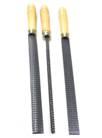 8"long, 3 Piece Wood Rasp File Set With Wooden Handles (Hawk: F-76300)
