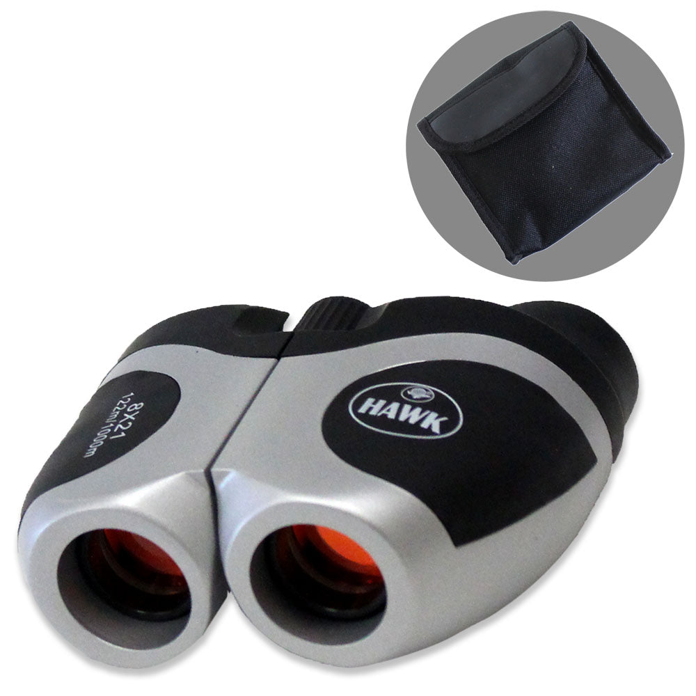 Great For School Sporting Events, Cool Enough For Even The Most Stylish Teen. 8x, 21mm Optics, Focus Wheel, Amber Optics. Metallic Gray And Black That Comes With A Belt-attachable Leatherette Carrying Case And A Neck Strap. It's About 4" X 3" X 1 1/2". Strong 8x power magnification for viewing all that nature has to offer - animals, plants, trees! 21 mm ruby lenses which help cut the glare; 124m/1000m field of view Focus slider located in middle - instructions provided for focusing and sharpening image Nylon pouch is belt attachable so you can carry the binoculars on the go during your travels These are the lightest & smallest binocular option for backpacking - great for kids!