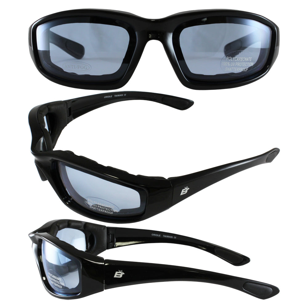 Birdz Oriole Motorcycle Glasses with Blue Shatterproof Anti-Fog Polycarbonate Lenses and Wind Blocking Foam