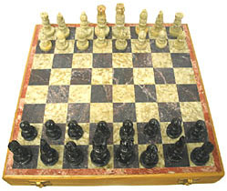 Each piece in this eye-catching set is handcrafted in India using age-old techniques. The top of the velvet-lined box is also made from soapstone. Free your inner chess master or indulge a friend's hobby.