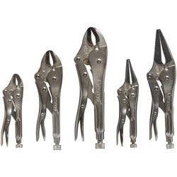 Package: 1 Ea5", 7" & 10" curved jaw pliers & 6" & 9" long-nose pliers Patented angled tooth pattern for better grip Nickel-plated finish resists rust & corrosion Compound action for powerful nonslip locking grip Long nose with wire cutter gets to hard-to-reach spots Versatile curved jaw features integral wire cutter