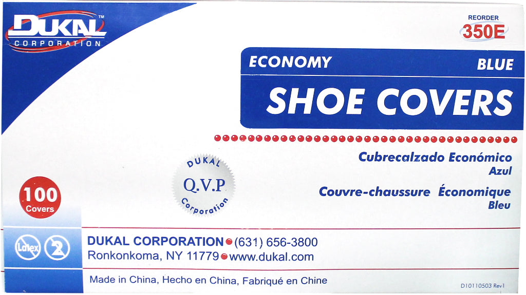 Dukal Shoe Covers, Economy, Blue, Non-Sterile, 100/bx 3bx/cs. Durable and fluid repellent. Non-conductive" Case Pack 3 Please note: If there is a color/size/type option, the option closest to the image will be shipped (Or you may receive a random color/size/type).