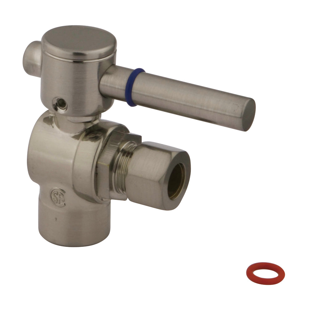 The -turn angle stop valve features a sleek cylindrical lever which controls the movement of water through and from plumbing fixtures. The valve is made of solid brass built for durability and dependability and also comes in a variety of finishes to better coordinate your kitchen/bathroom.