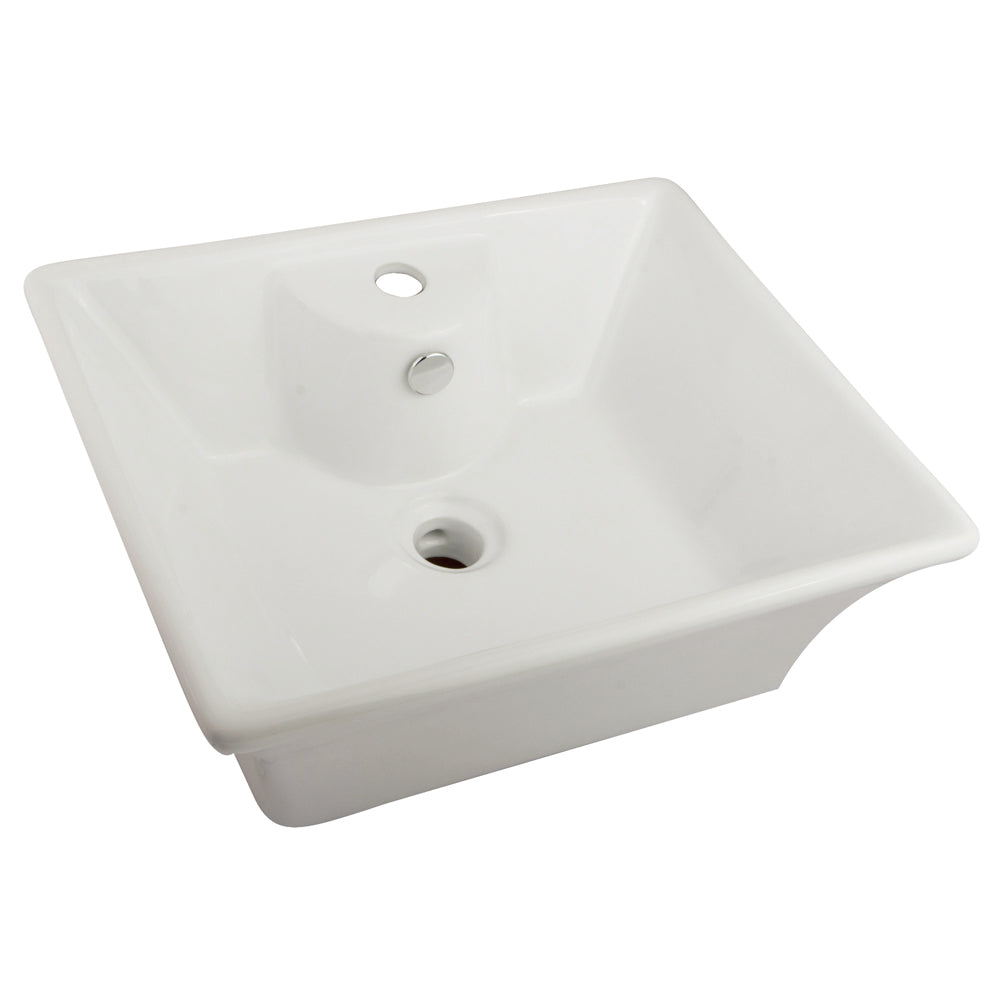 The exterior body of this vessel bathroom sink complements the curved inward construction inside giving a distinctive look to it. The square-shaped basin is made from the finest vitreous china providing long-lasting use. The sink is complementary to many different styles for your bathroom. A single drilled faucet hole lies on the faucet deck where an overflow hole is also included.