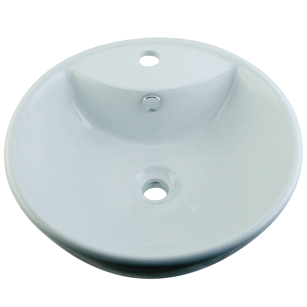 This vessel sink offers a sleek elegant look for your bathroom or powder room. The body is constructed with a smooth layering of its finest vitreous china with a round basin measured at 16-1/2" in diameter. A single hole is drilled on the faucet deck with an overflow hole inside the basin. The depth of the sink is measured at 7" providing ample space for a satisfying wash.
