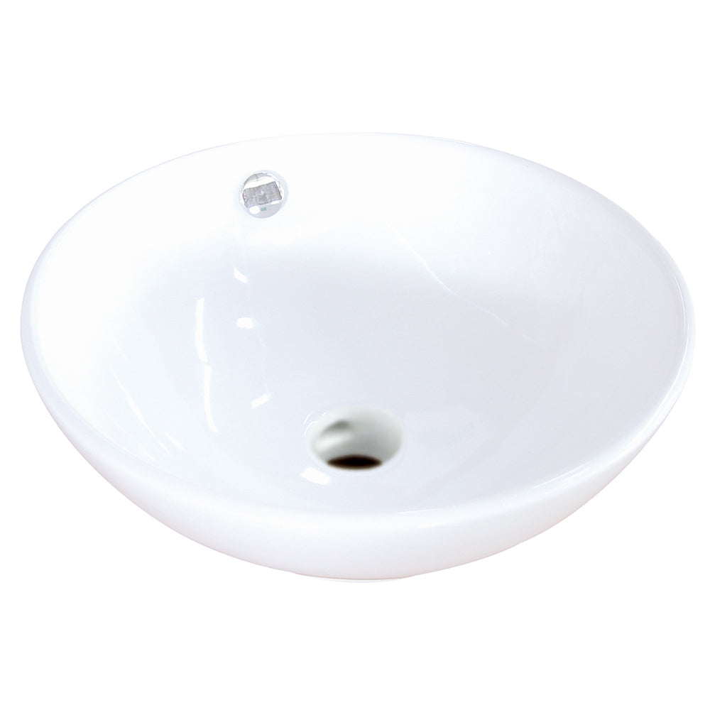The countertop vessel sink is built with more capacity than other compact vessel sinks. The round 15-3/4" shape is convenient and accessible for containing large amounts of water while washing. Made from vitreous china material, this tabletop installed basin is sleek and exceptionally durable for long-lasting use.