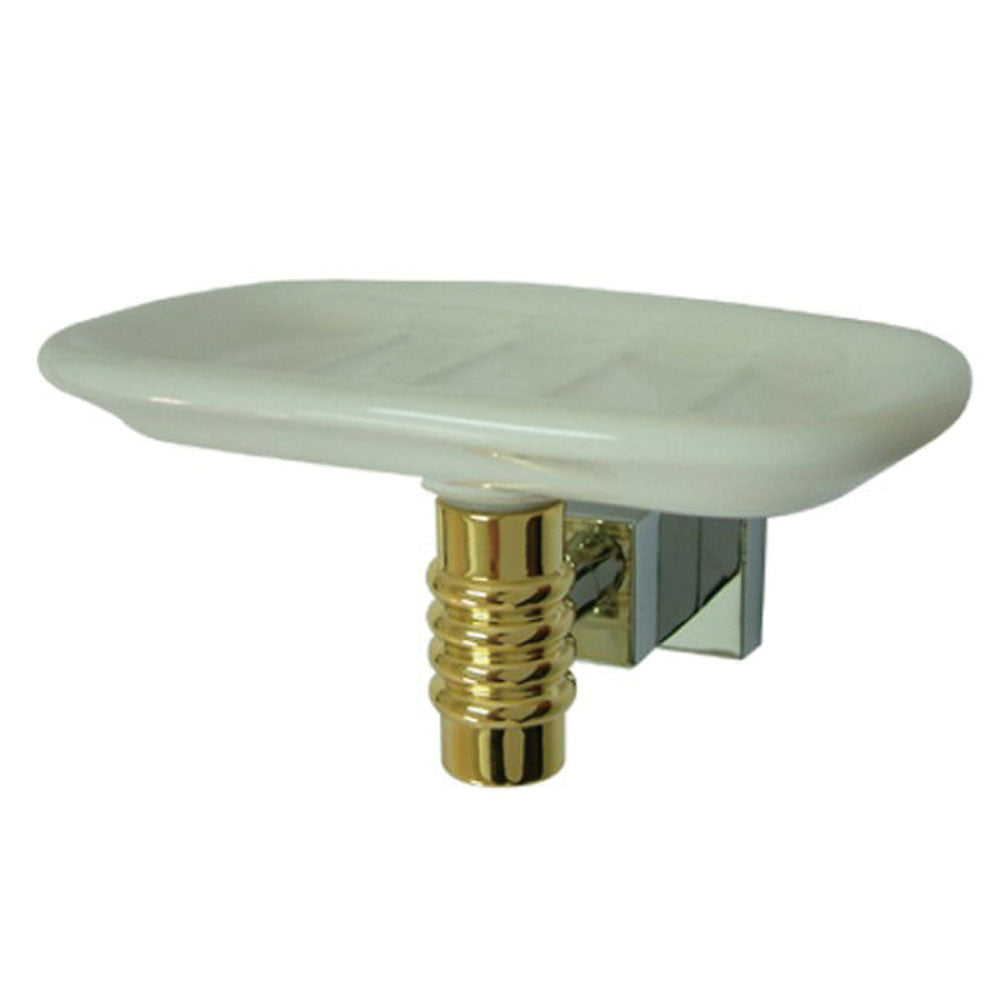 Kingston Brass BAH4645CPB Round Soap Dish Holder With Ceramic Soap Dish, Polished Chrome - Polished Chrome/Polished Brass