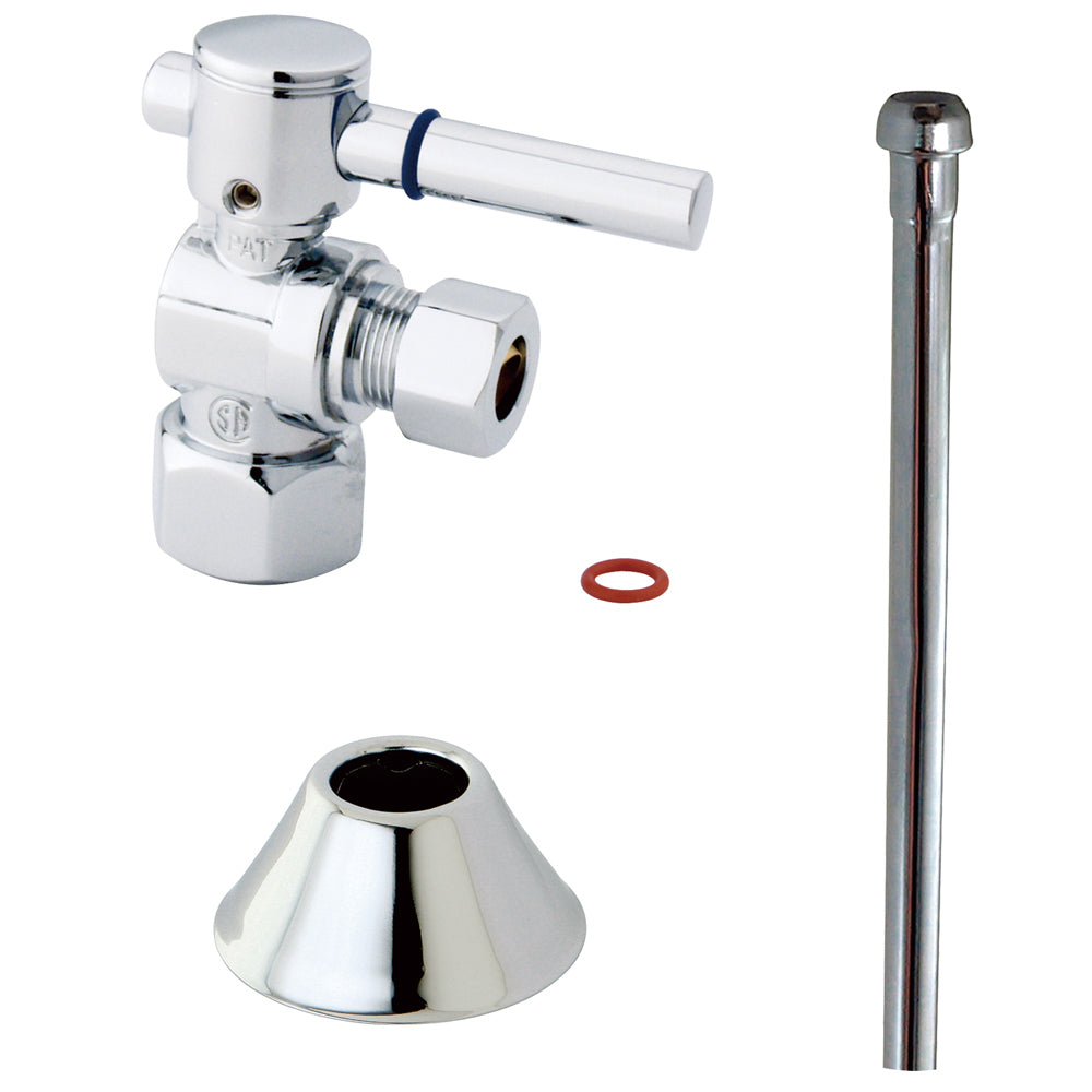 This 3-piece toilet supply kit from Kingston Brass provides all the necessary parts in the water flow process of your bathroom toilet. The set includes a single lever 1/2" compression angle stop, a 30" flat closet supply line, and a 1/2" IPS bell flange. Each of these parts are made from polished chrome; constructed in solid brass for durability and reliability.