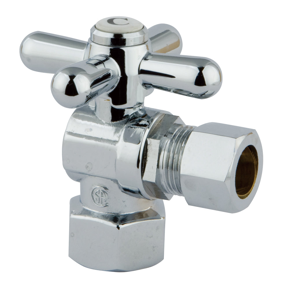 The -turn angle stop valve features an easy-to-handle cross lever which controls the movement of water through and from plumbing fixtures. The valve is made of solid brass built for durability and dependability and also comes in a variety of finishes to better coordinate your kitchen/bathroom.