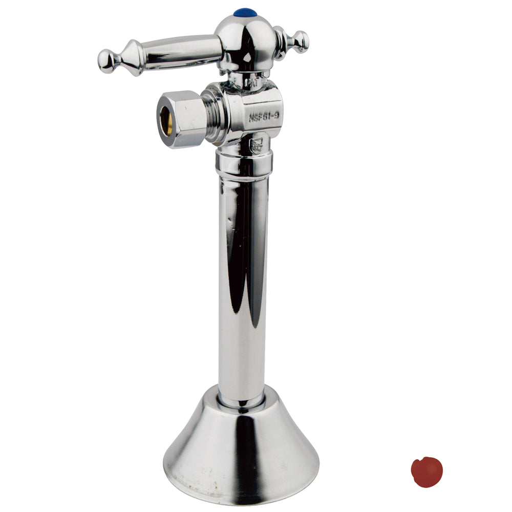 This -turn angle stop valve features a stylish Vintage lever which controls the movement of water through and from plumbing fixtures. The valve is connected to a long 5" extension is made of solid brass built for durability and dependability. Each product also comes in a variety of finishes to allow more than one option in decorating your kitchen/bathroom.