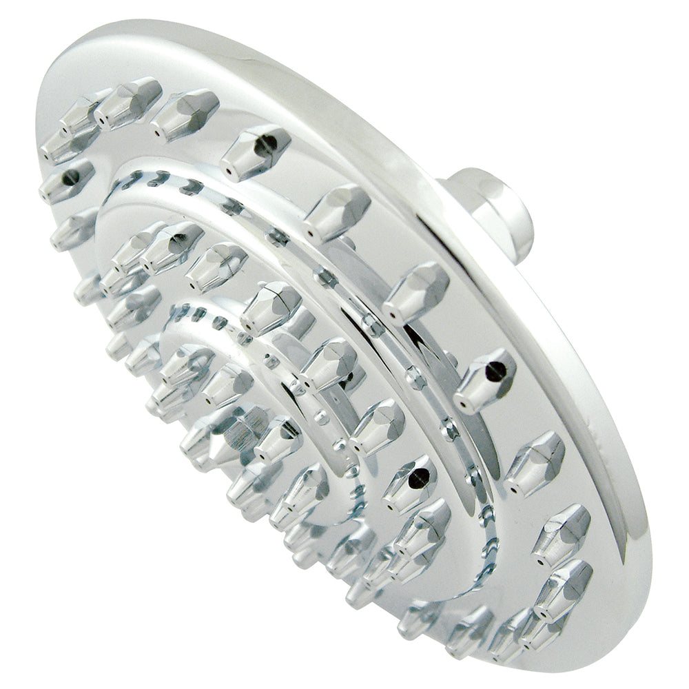 This shower head has a 6" diameter face and 50 water jets for a relaxing downpour. The solid brass construction allows long-lasting use and is built to withstand corrosion and tarnishing.