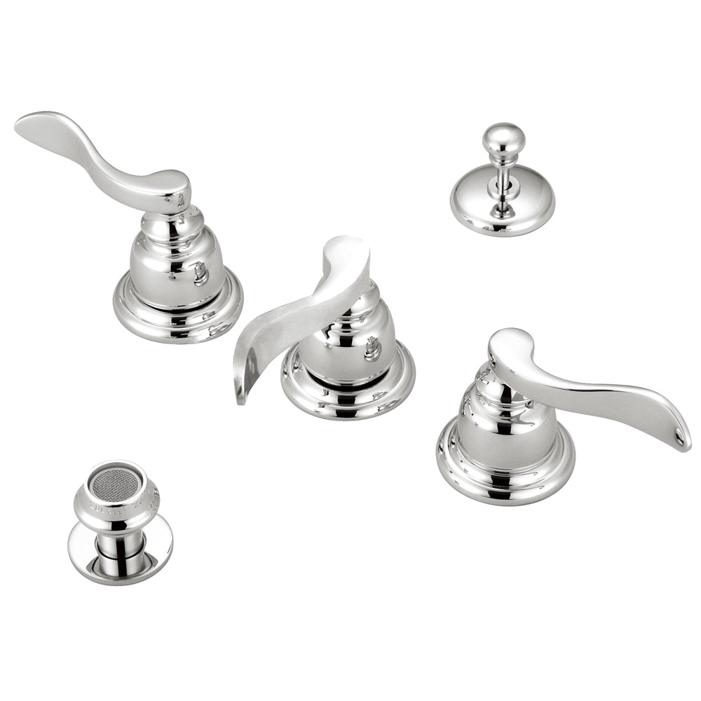 The bidet faucet is complimentary to both traditional and modern designs while providing quality functionality and performance. The three handles all feature hot and cold indicators and are made of acrylic. A brass pop-up is included to allow water containment when necessary.