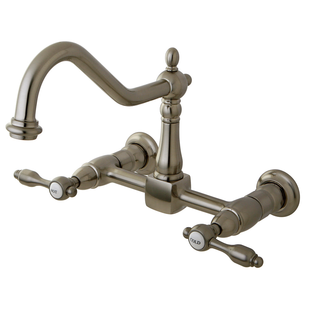 The true Vintage look of a wall mount faucet, although originally designed to be a kitchen faucet, it can also be used as a vessel lavatory faucet, equipped with a ceramic cartridge and fabricated out of solid brass for long lasting performance, Satin Nickel