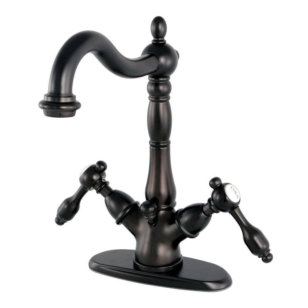 From the Tudor collection by Kingston Brass, this monoblock lavatory faucet will dress your bathroom giving it an elegant traditional look. Equipped with a ceramic cartridge and manufactured from solid brass for long lasting performance and made in Oil-Rubbed Bronze.