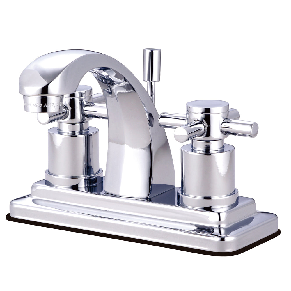 Introduce your bathroom to state-of-the-art glamour with this bathroom faucet. This faucet has a deck mount setup and features a 4" centerset installation. The body is fabricated from solid brass for durability and long-lasting use. The color finish is made of polished chrome for that reflective shine, as well as resisting scratches, corrosion and tarnishing. The spout has a reach of 4" and a height of 5". The handles allow for easy management of water volume and temperature. The faucet operates with a ceramic cartridge valve for droplet-free functionality with the water measured 1.2 GPM / 4.5 LPM and a 60 PSI maximum rate. An integrated removable aerator is inserted beneath the spout's head piece for conserving water flow. A brass pop-up drain in a matching finish is included. All mounting hardware is included and standard US plumbing connections are used. A 10-year limited warranty is provided to the original consumer.