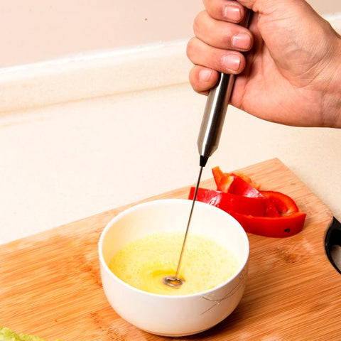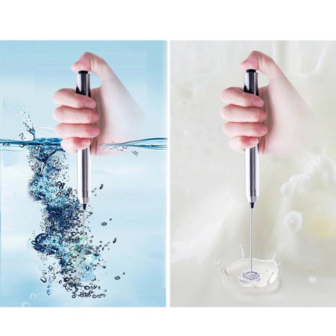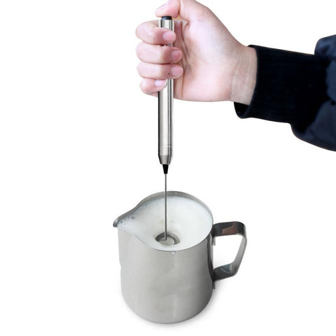 Electric Stainless Steel Milk Frother Wand Slim Handheld Milk Frother Coffee Latte & Cappuccino with StandDescription FULL STAINLESS STEEL CONSTRUCTION - Both the main body and frothing wand constructed from high quality stainless steel which means that this stainless steel milk frother won't rattle and rumble or fall apart like cheaper plastic models. SIMPLE TO USE & EASY TO STORE - Just turn on with the one touch control and it does all the work for you. All you need to do is hold it! Compact design so you can store it in the drawer and use it everyday without having to take up valuable counter space. PROFESSIONAL STEAM FREE MILK FROTHER- Our handheld steam free milk frother creates creamy, thick froth the professionals would be proud of. SUPER EASY TO CLEAN DESIGN AND CONSTRUCTION- The sleek body of the frother is compact and lightweight, cleaning will be simple by just placing the rod under the running water to rinse; minimal effort will be required on your part to maintain its best quality and functionality even through the years. PERFECT TO MAKE DELICIOUS BEVERAGES- Indulge your taste buds with homemade delicacies like whisked eggs, soups, dressings, sauces and caffeine beverages. Starbucks grade espresso, cappuccino, latte or hot chocolate can be made and served in absolutely no time. Package Included: 1xMilk Frother 1xStand 1xPackage (CUP is not included)