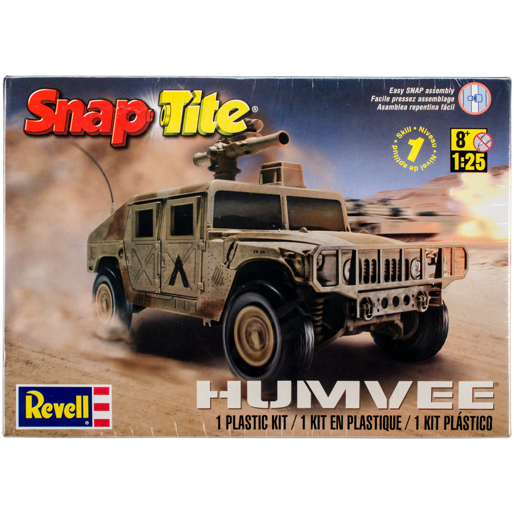 Revell-SnapTite Plastic Model Kit: Humvee. The perfect collector piece for army and truck buffs! This package contains thirty-five plastic pieces, molded in desert tan, peel 'n stick decals and measures at 7-1/2 inches long. Scale of the vehicle is 1:25. Skill level: 1. Recommended for ages 8 and up. WARNING: Choking Hazard- small parts. Not for children under 3 years. Imported.
