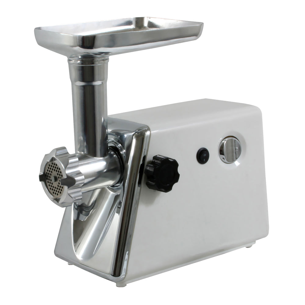 Process your own sausage, bratwurst and hamburgers with ease using the Sportsman Series Electric Meat Grinder. Blend meat with your favorite seasonings for fresh and healthy homemade meals. Use your own casing for homemade sausage, pepperoni and bratwurst. Add your own spices and seasonings to make each recipe just the way you like it. You can even grind vegetables to prepare great tasting meals. This 350-Watt Meat Grinder can grind up to 100 pounds per hour, and features a forward/reverse button to help prevent jamming. The classic design with silver accents is durable, easy to clean, and has a contemporary look that fits in any kitchen. Cleaning is easy with removable cutting blades and a detachable stainless steel food tray. Includes all the attachments and tools you need to begin grinding your own fresh meat, fowl, or wild game: 3 Cutting Plates (Fine, Medium, Coarse), 1 Kubbe Attachment, 1 Food Stuffer, 1 Sausage Tube
