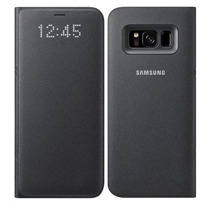 Galaxy S8 Plus LED Wallet Cover Black. Receive a variety of information through LED lights on the face of your cover: Time, alarms, incoming calls and more. Store credit cards or cash in the interior card pocket