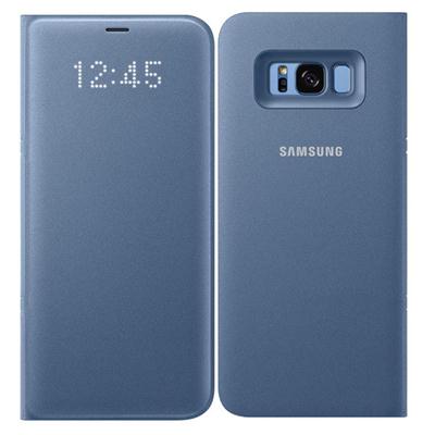 Galaxy S8 Plus LED Wallet Cover Blue. Receive a variety of information through LED lights on the face of your cover: Time, alarms, incoming calls and more. Store credit cards or cash in the interior card pocket