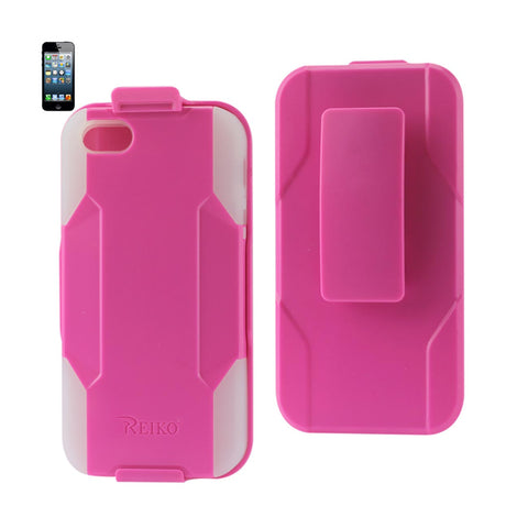 REIKO IPHONE SE/ 5S/ 5 3-IN-1 HYBRID HEAVY DUTY HOLSTER COMBO CASE IN HOT PINK CLEAR