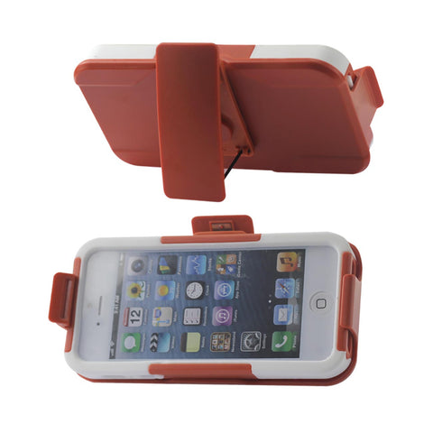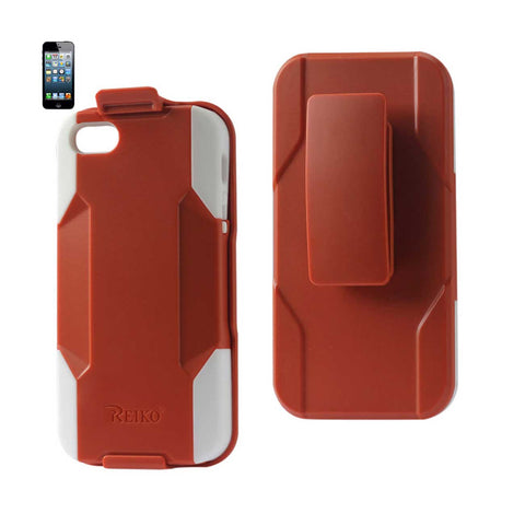 REIKO IPHONE SE/ 5S/ 5 3-IN-1 HYBRID HEAVY DUTY HOLSTER COMBO CASE IN ORANGE WHITE