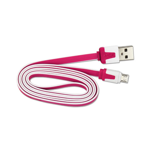 REIKO MICRO USB FLAT USB DATA CABLE 3.2FT IN HOT PINK